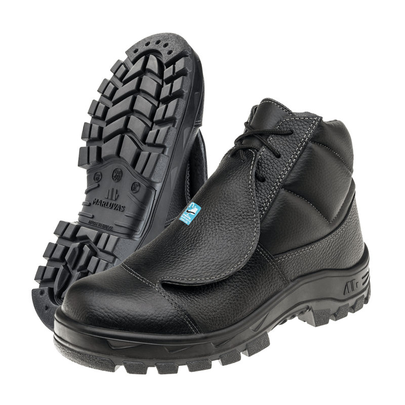 CALCADO SEGURANCA | TIPO: BOTINA | MATERIAL: COURO (VAQUETA) | FECHAMENTO: CADARCO | SOLADO: POLIURETANO BIDENSIDADE | BIQUEIRA: COMPOSITE | PALMILHA: ANTIPERFURANTE (MONTAGEM FIBRAS) | CONSTRUCAO: METATARSO EXTERNO | COR: PRETA | TAMANHO: 33 A 47| MODELO: LINHA COMPOSITE | MARCA: MARLUVAS | REF: 50B29MEXCPAPSRV