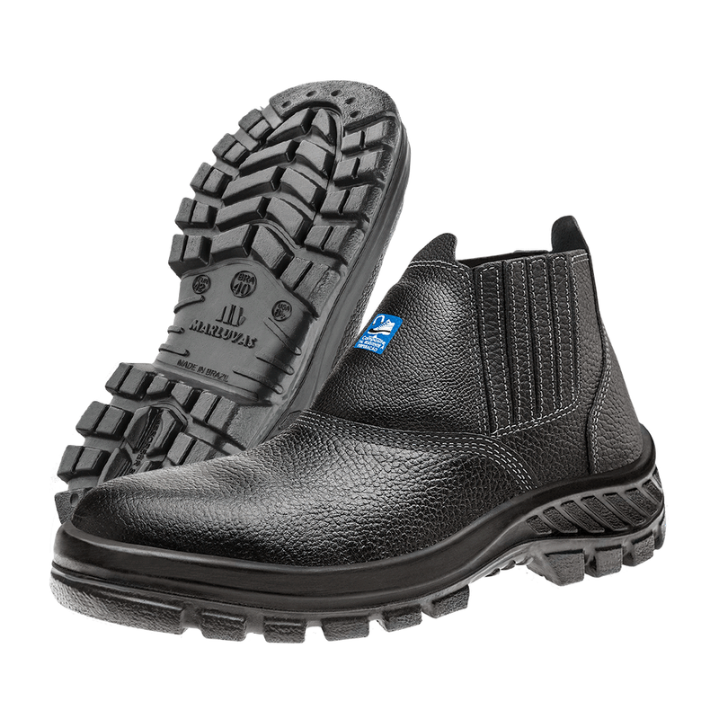 CALCADO SEGURANCA | TIPO: BOTINA | MATERIAL: COURO (VAQUETA) | FECHAMENTO: ELASTICO | SOLADO: POLIURETANO BIDENSIDADE | BIQUEIRA: COMPOSITE | PALMILHA: ANTIPERFURANTE (MONTAGEM FIBRAS) | CONSTRUCAO: CONVENCIONAL | COR: PRETA | TAMANHO: 33 A 47 | MODELO: LINHA COMPOSITE | MARCA: MARLUVAS | REF: 30B19CPAP